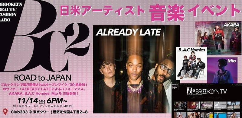 Experience the cross-cultural music event ROAD to JAPAN, live at Tokyo Tower’s Club333! Featuring Already Late — Winner of the Brooklyn Audition.