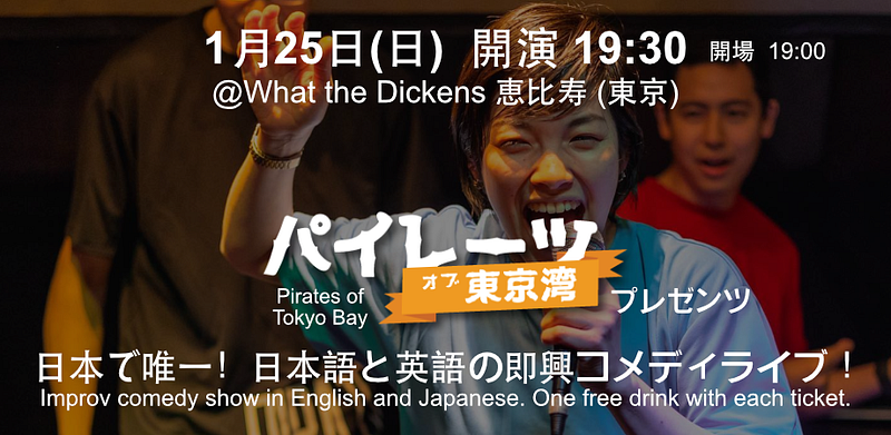 The Pirates of Tokyo Bay have been making audiences laugh in English and Japanese for more than a decade. Whatever language you speak, they can make you laugh. Performers create scenes, stories and songs inspired by you, the audience.
